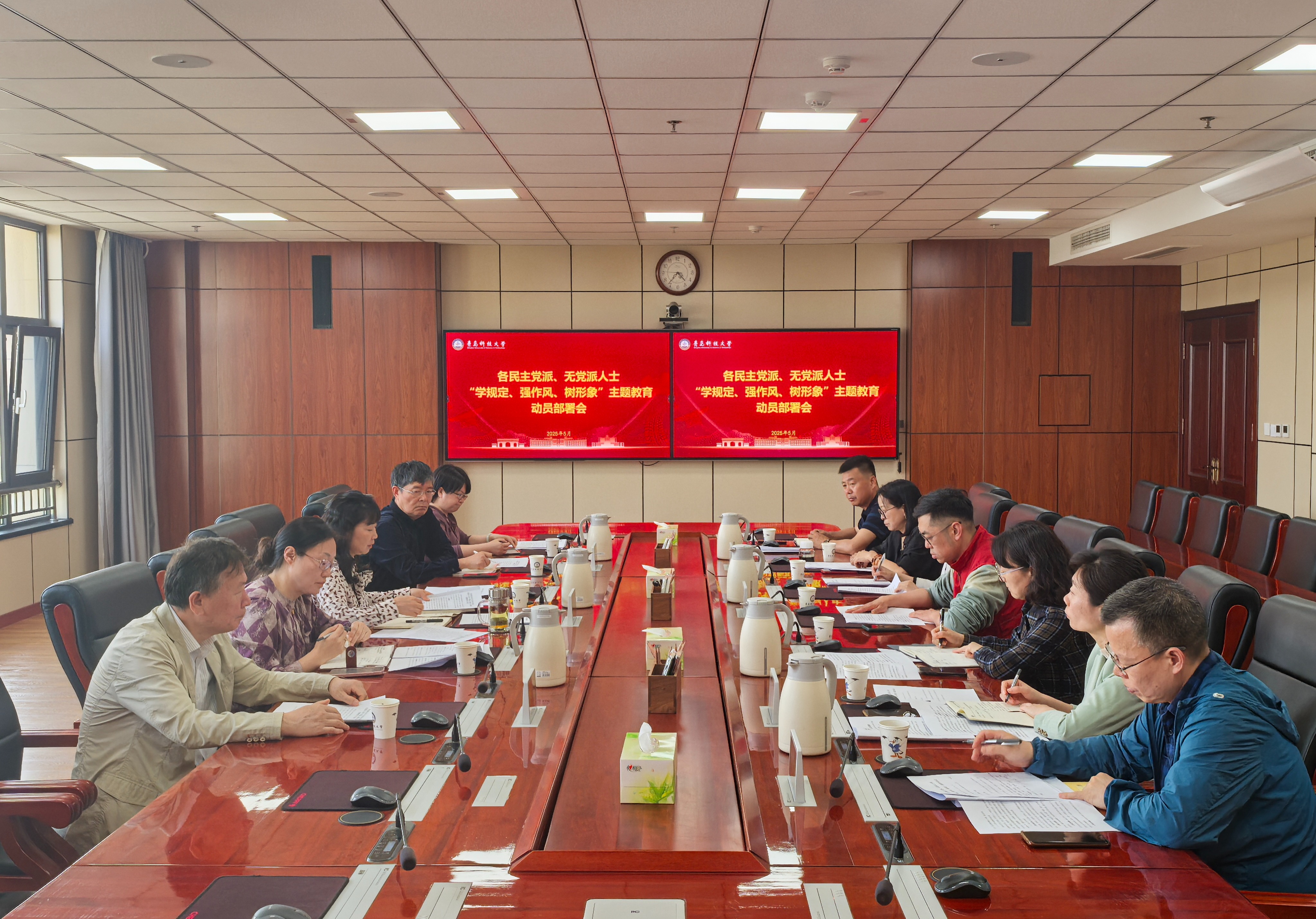 5月19日,学校各民主党派、无党派人士“学规定、强作风、树形象”主题教育动员部署会在崂山校区举行。学校党委副书记沈文青出席会议并讲话。