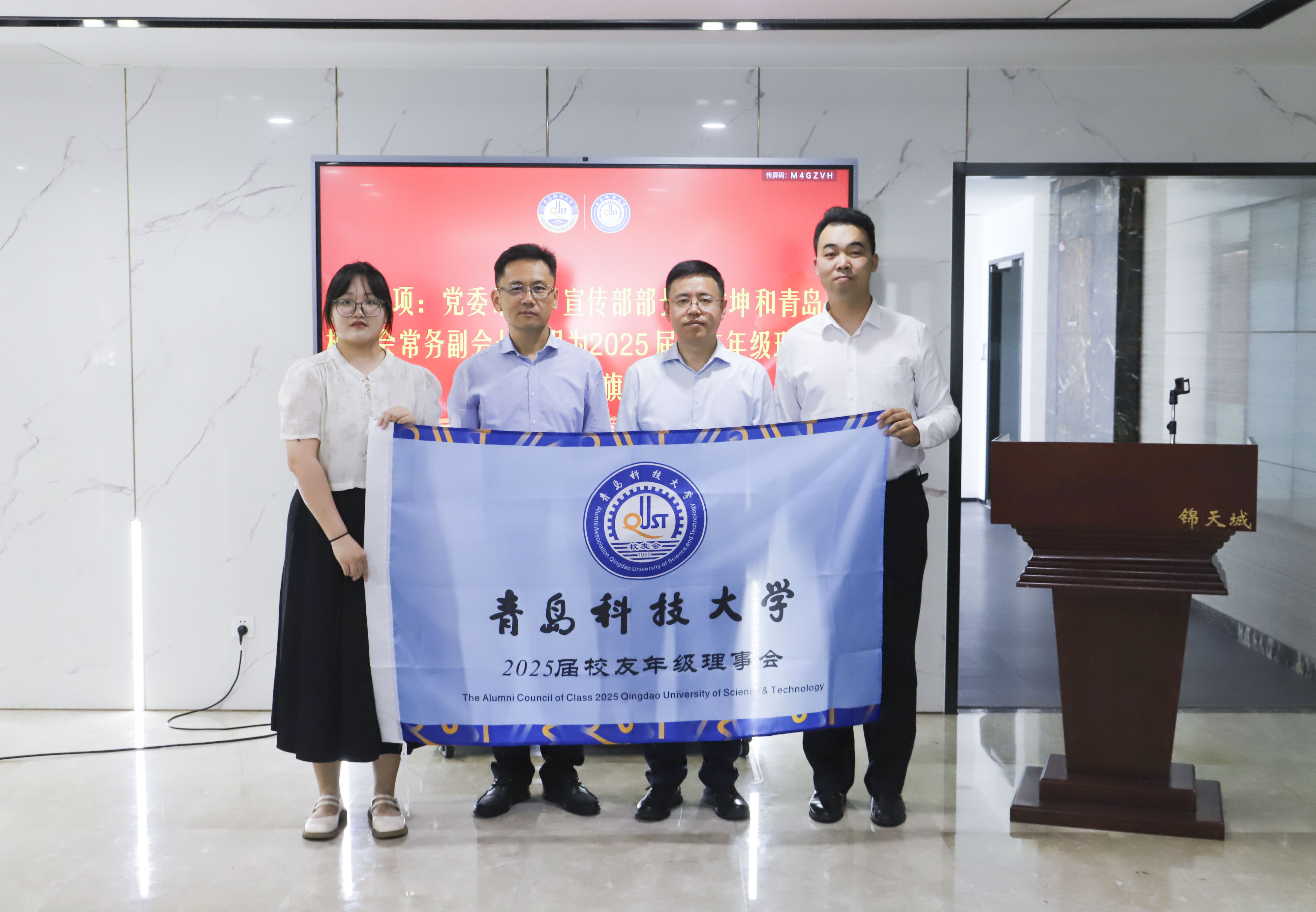 仪式上,张洪坤和王宇共同为2025届校友年级理事会授旗。合作发展处副处长兼校友工作办公室副主任卢中彬宣读了beat365正版唯一官网校友总会《关于同意成立beat365正版唯一官网2025届校友年级理事会的决定》。校团委副书记李浩介绍了2025届校友年级理事会领导机构建议人选的酝酿情况。刘世文为理事会领导机构成员颁发了聘书。学生处副处长尤亭亭、研究生处副处长陈为、外国语学院党委副书记兼副院长马寒、法学院党委副书记兼副院长王祥梅分别为参会的常务理事颁发了聘书。新当选的2025届校友年级理事会会长韩朝阳作表态发言。王宇、刘世文、程永志等校友结合自己的工作经历,分享了创业历程和工作感悟,也为校友联络员们送上了毕业祝福。本次活动得到了上海锦天城(青岛)律师事务所和程永志校友的大力支持。