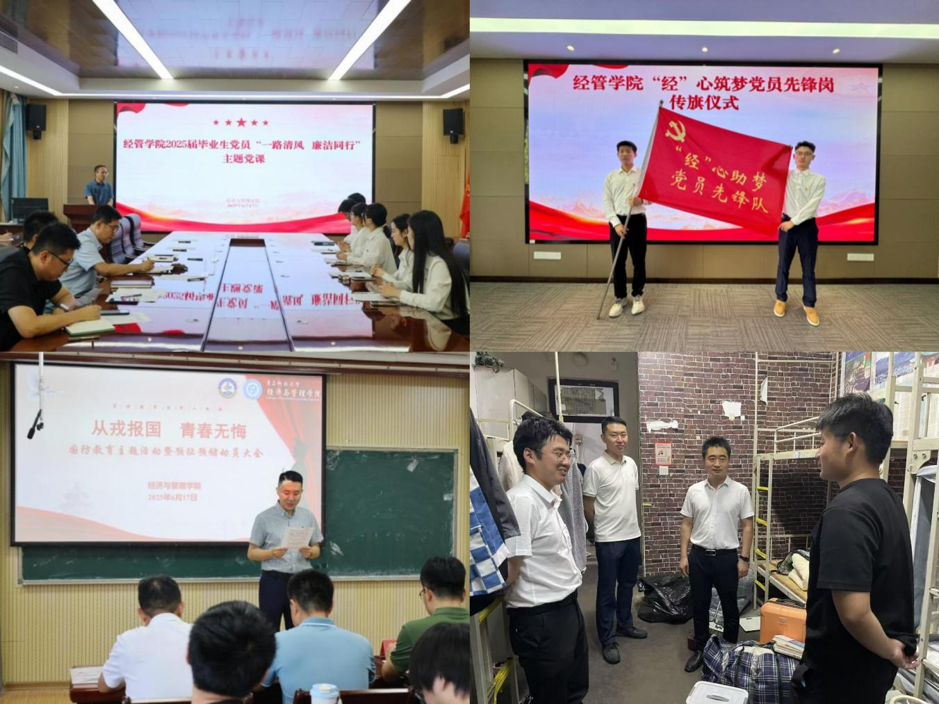 德润心田,奏响信仰强音。学院以德育铸魂,将思想政治教育贯穿毕业季始终。一方面,开展“一路清风廉洁同行”专题党课,邀请省委党校专家结合典型案例剖析,引导毕业生党员以党纪为尺,扣好职业生涯“第一粒扣子”。另一方面,创新开展征兵宣传教育,邀请优秀退伍士兵分享军旅故事,结合政策解读,激发毕业生投身国防建设的热情。毕业季期间,学院领导走进学生宿舍,细致了解毕业生去向,传递温暖关怀的同时,以思想引领强化毕业生责任担当,为其未来发展注入精神动能,助力经管学子在时代浪潮中坚守初心、勇担使命。