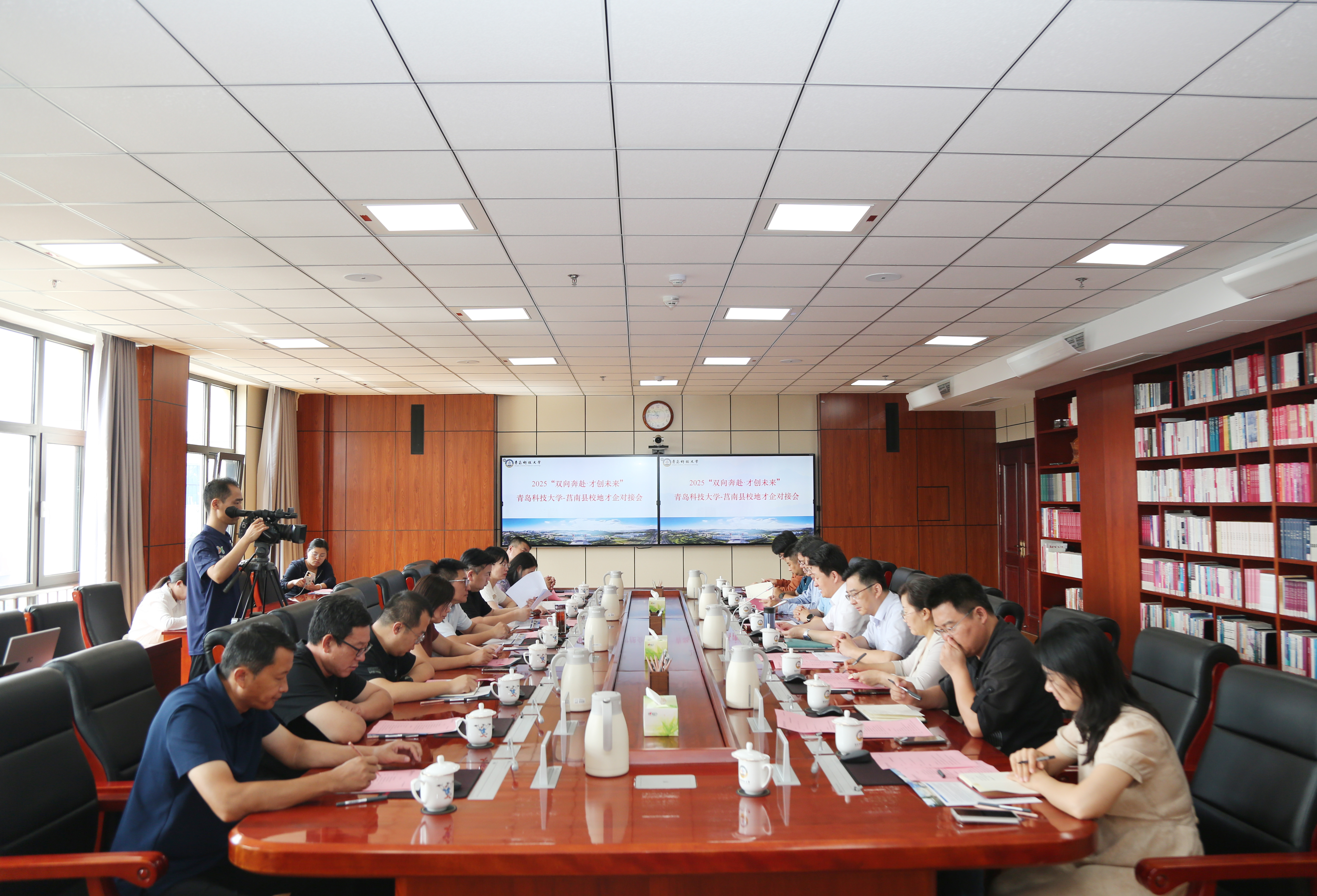 莒南县相关部门负责同志、部分企业家代表,学校相关部门、学院负责人及教师代表参加座谈。