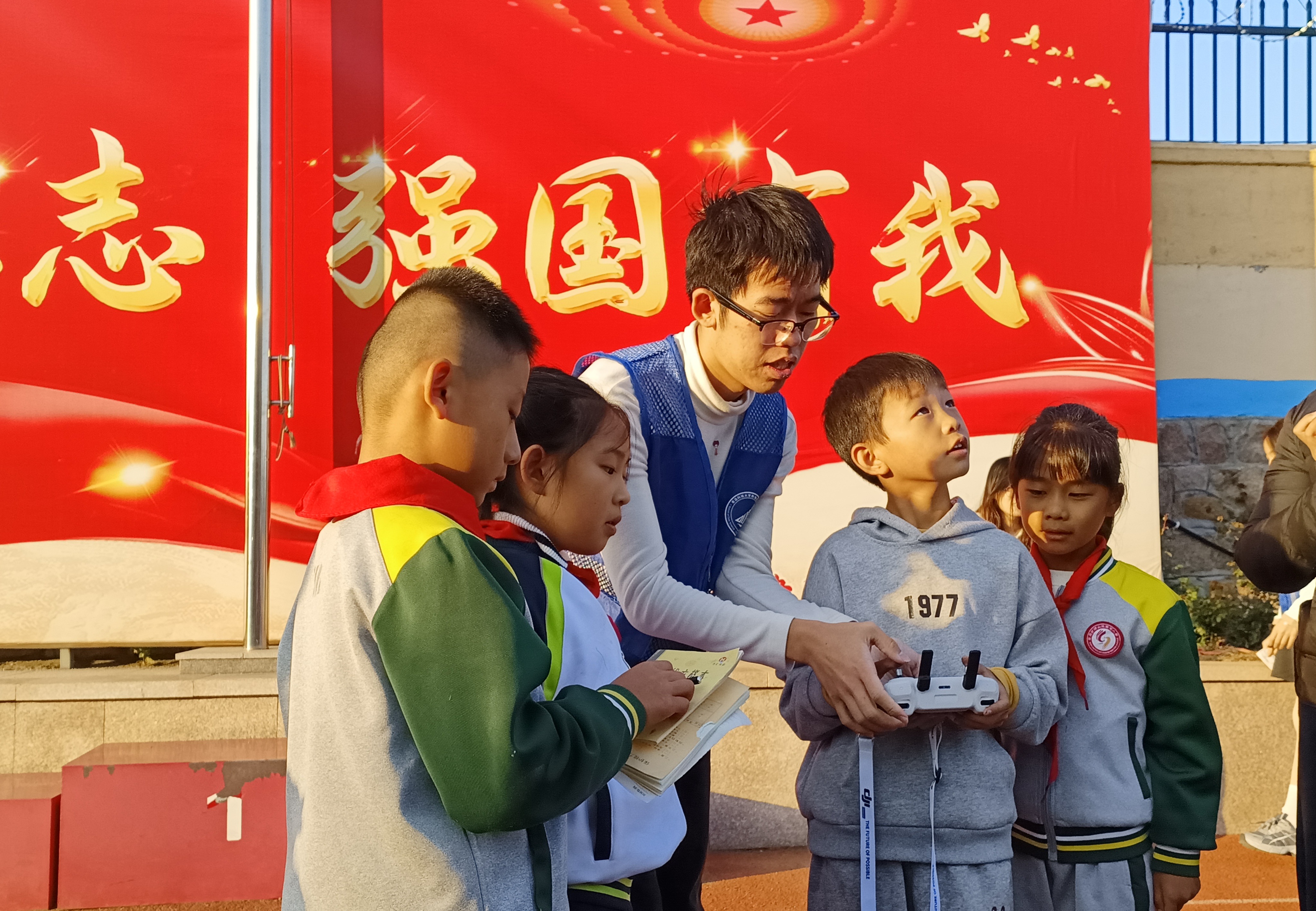 为扎实推进大中小学思政课一体化建设,将爱国主义教育与国防教育融入实践育人全过程,10月21日,数据科学学院组织20余名学生志愿者前往崂山区南宅小学,开展“无人机科普进校园 国防教育润童心”主题宣讲活动,为该校1-3年级200余名师生打造了一堂兼具科技感与思想性的“行走的思政课”。