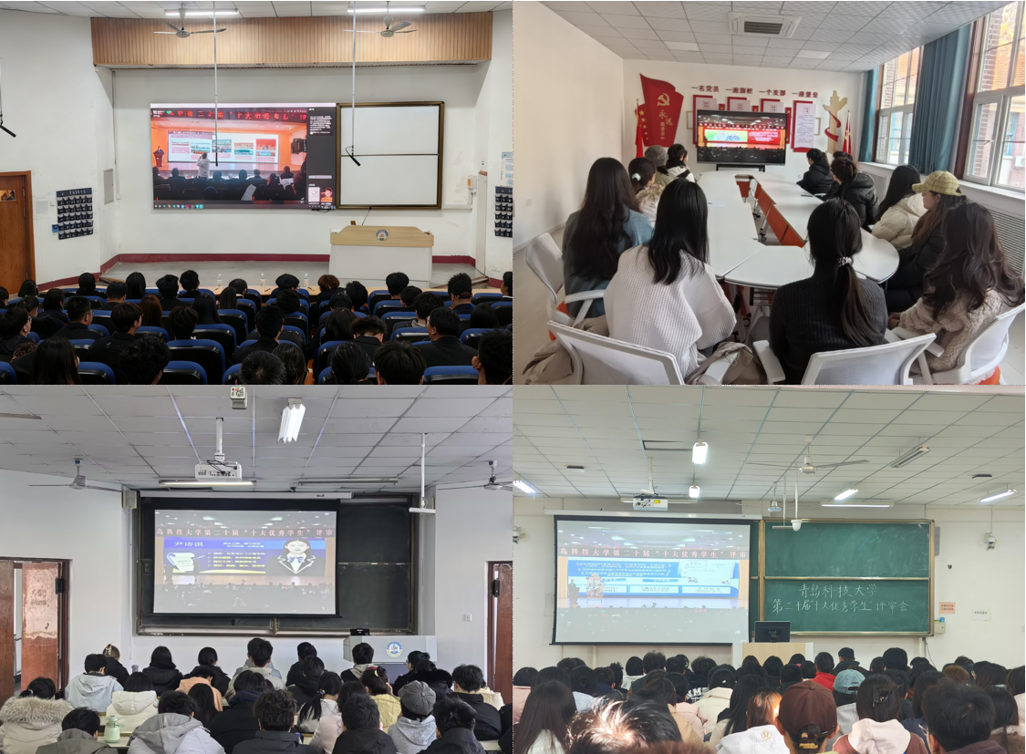 评审会通过“青科学工”微信公众号同步直播,吸引千余名师生在线观看,网络宣传投票环节阅读量更是高达3.8万余人次,引发全校广泛关注。前期,为进一步强化朋辈示范引领效应,学校精心制作候选人风采展示视频及主题海报,在全校各餐厅、教学楼等师生高频活动区域滚动播放、展示,全方位呈现优秀学子的卓越风采与成长感悟,让榜样力量触手可及。