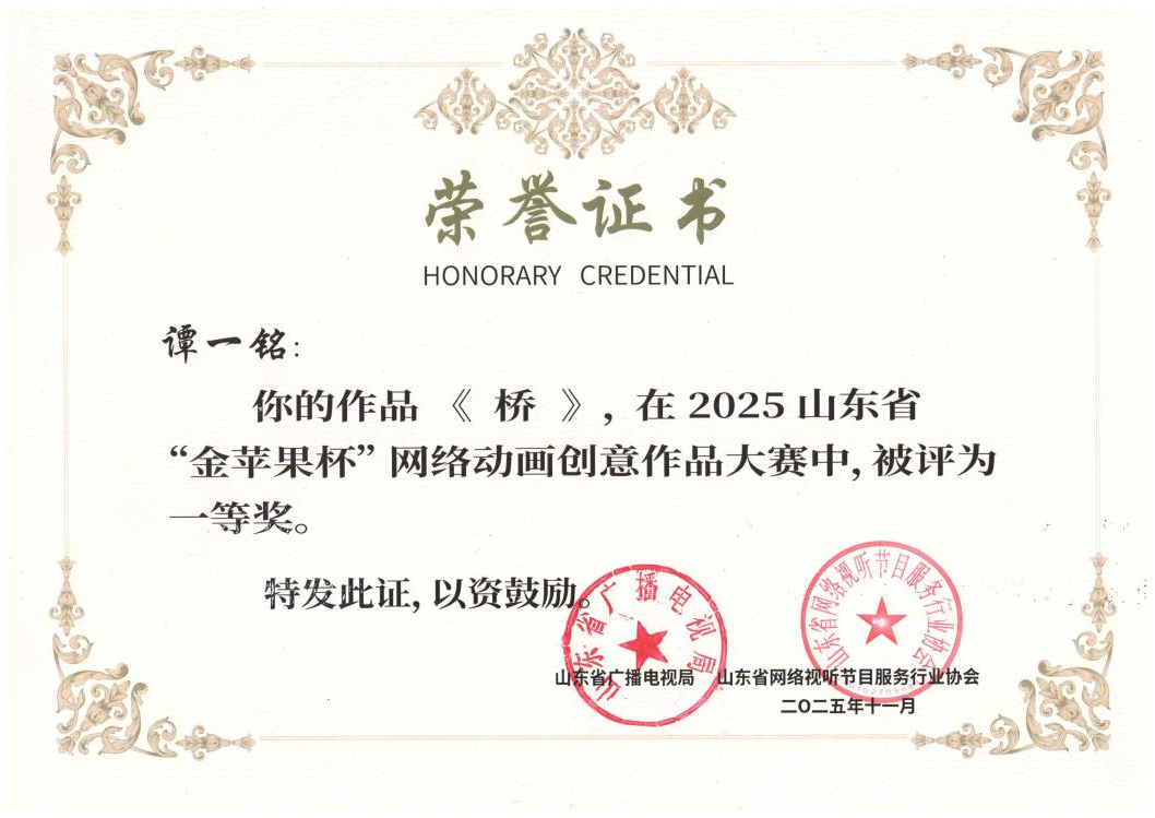 其中,传媒学院学生谭一铭的参赛作品《桥》继在北京国际电影节、北京电影学院学院奖获奖后,再次获得山东最高官方大奖。传媒学院学生袁梦超的参赛作品《沙海回想》获得动画组一等奖,传媒学院学生李闯的参赛作品《山海异闻录》获得漫画组二等奖。