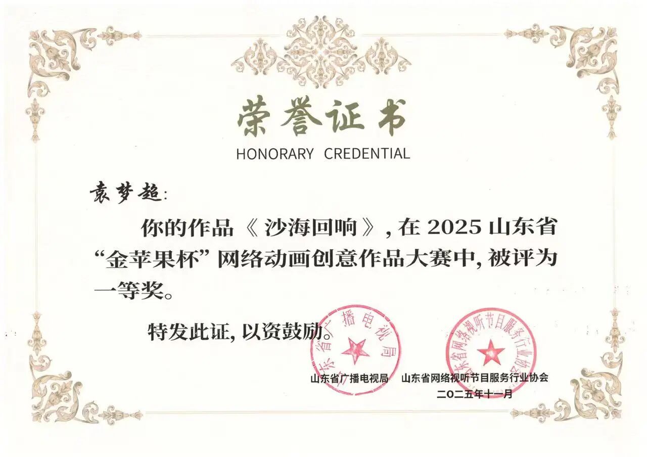 日前,由山东省广播电视局、山东省网络视听节目服务行业协会主办的山东省“金苹果杯”网络动画创意作品大赛在烟台举办。beat365正版唯一官网参赛动漫作品表现抢眼,揽获高校动画作品组、漫画作品组两项一等奖。