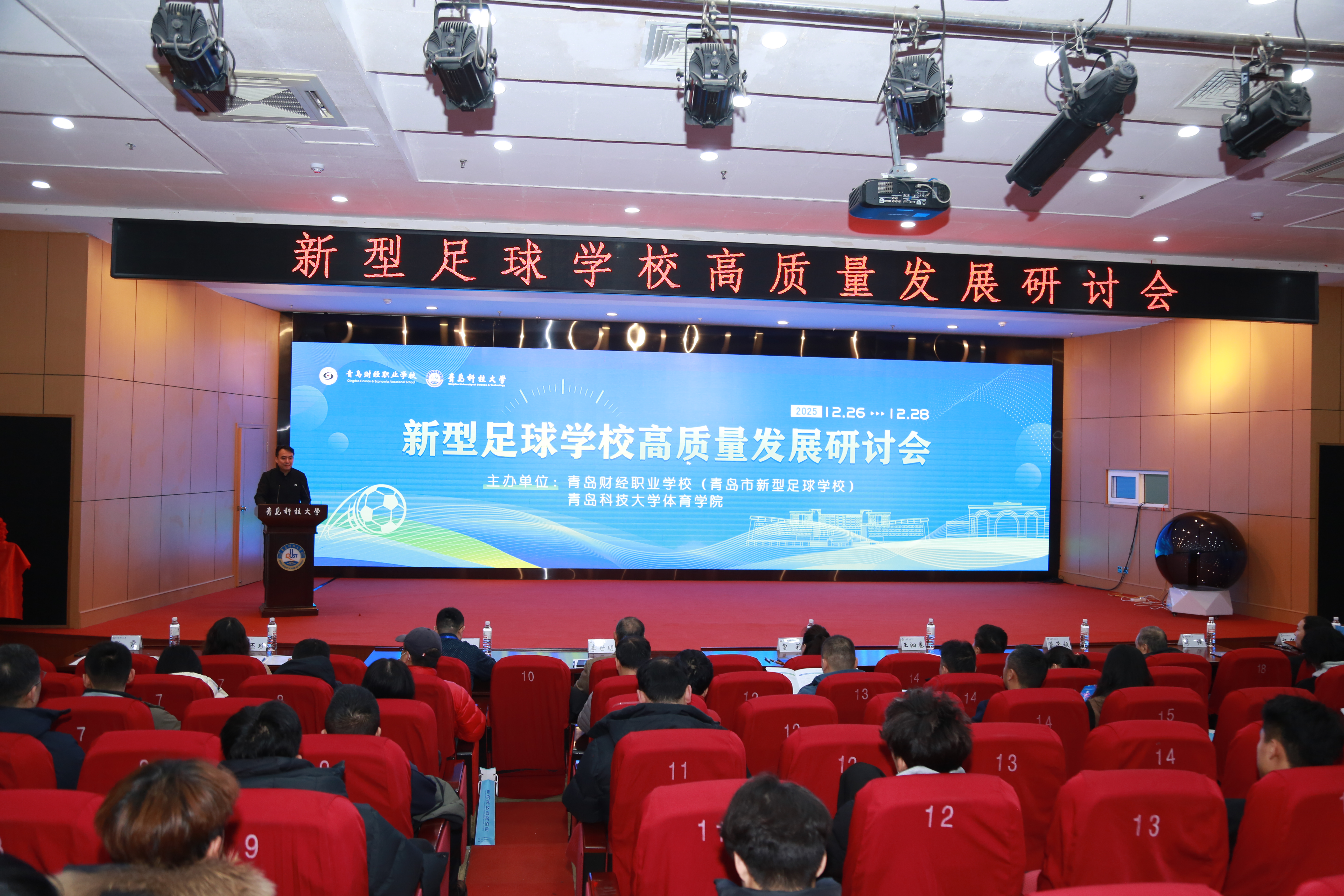 近日,由青岛市教育局、青岛校园足球协会、青岛高校体协指导,青岛财经职业学校(青岛市新型足球学校)、beat365正版唯一官网体育学院主办的新型足球学校高质量发展研讨会在崂山校区第三报告厅召开。青岛市教育局体卫艺处二级调研员王泗卷,青岛校园足球协会会长管泽毅,青岛财经职业学校副校长(主持工作)刘杰,beat365正版唯一官网体育学院党委书记杨中华及企业、师生代表近百人参加了本次研讨会。会议由体育学院院长张霄主持。