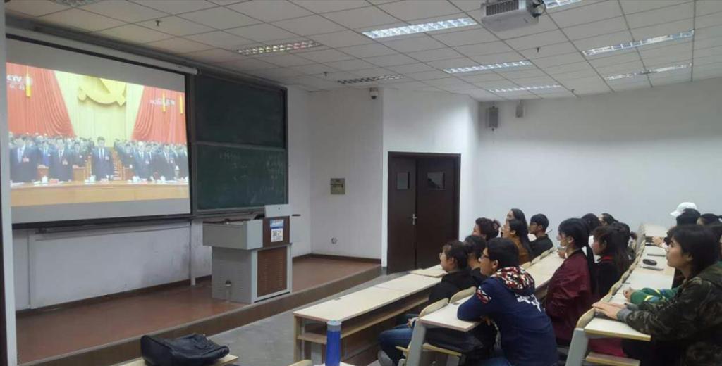 为了能集中更多新疆籍少数民族学生观看十九大开幕式视频,内派教师避开学生上课的高峰期,当天晚上6:30,分别在崂山校区明德楼204室,四方校区2教107室组织新疆籍少数民族学生观看十九大开幕式实况。