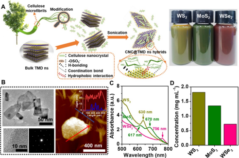 图3. CNC液相辅助剥离制备CNC杂化TMD ns