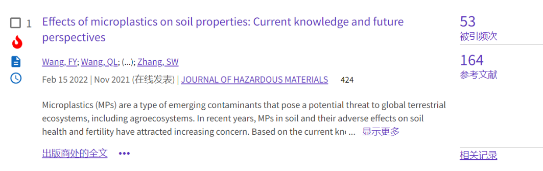 (1)论文1发表于环境类top期刊《Journal of Hazardous Materials》(https://doi.org/10.1016/j.jhazmat.2021.127531),累计被引53次。该文系统评述了微塑料对土壤物理性质、化学性质和微生物学性质的影响,并探讨了当前研究的不足,指明未来需要加强的研究方向。