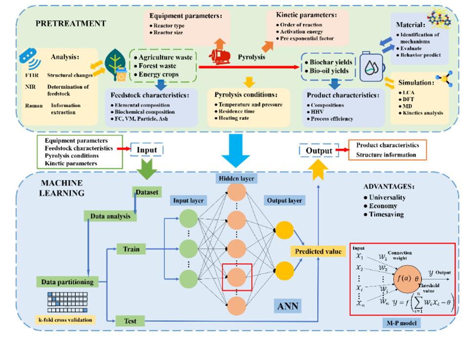 在2022年上半年研究成果的基础上(DOI:10.1016/j.biortech.2022.127887和DOI:10.1016/j.indcrop.2022.115159),团队继续聚焦在木质纤维素类生物质绿色转化、流程模拟、结合传统分析方法和功能材料制备领域,进行了基于机器学习的木质纤维素生物质高值化利用的研究分析。相关研究成果以“Advances in machine learning for high value-added applications of lignocellulosic biomass”为题目,发表在生物质化工研究领域国际知名期刊Bioresource Technology (SCI一区TOP期刊,影响因子为11.889)。论文第一作者为化工学院硕士研究生葛瀚文,通讯作者为徐环斐,beat365正版唯一官网为第一单位和唯一通讯单位。论文DOI为10.1016/j.biortech.2022.128481。