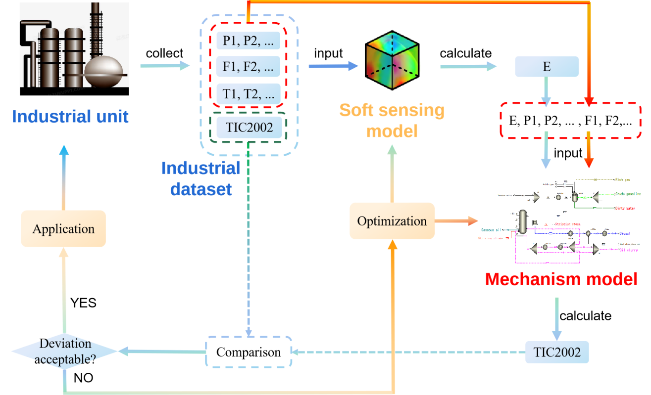其次,化工过程中存在大量不可观测的隐性变量,田文德教授团队以典型不可观测变量——精馏塔板效率为例,开展基于机理深度学习的软测量方法研究。他们利用大数据聚类凝聚装置的工况特征,作为机理建模的输入条件,开展分馏过程多特征工况模拟,获得塔板效率与过程可测参数的关联数据集。基于深度学习算法构建塔板效率的实时软测量模型,实现塔板效率的实时监测。所提技术的可靠性在工业催化裂化装置的分馏塔中得以验证,并在可靠性领域顶级期刊Reliability Engineering & System Safety(中科院一区TOP,IF=8.1)上发表了文章“Mechanism-based deep learning for tray efficiency soft-sensing in distillation process”(论文链接:https://doi.org/10.1016/j.ress.2022.109012)。beat365正版唯一官网为论文的第一单位,化工学院田文德教授为论文的通讯作者,博士研究生王少辰为第一作者,实验室老师李传坤、刘彬、崔哲参与指导工作。