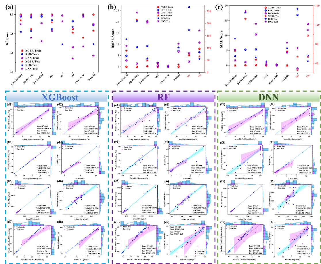 近日,化工学院青年教师徐环斐副教授团队在基于人工智能机器学习的低共熔溶剂体系木质纤维高值化利用研究领域取得新进展。相关研究成果以“Machine learning prediction of delignification and lignin structure regulation of deep eutectic solvents pretreatment processes”为题目,发表在生物质化工研究领域国际知名期刊Industrial Crops & Products (SCI一区TOP期刊),论文DOI链接为doi.org/10.1016/j.indcrop.2023.117138。论文基于机器学习研究了含路易斯酸的三元低共熔溶剂预处理木质纤维素类生物质过程中生物质的结构参数、溶剂物理化学参数和预处理条件与木质素脱除效率之间的内在关系,揭示了相互作用机制。采用多种机器学习模型以木质素的结构参数为目标变量进行了预测,模型具有较高的精准度。论文第一作者为化工学院2022级硕士研究生葛瀚文,通讯作者为徐环斐,beat365正版唯一官网为第一单位和唯一通讯单位。