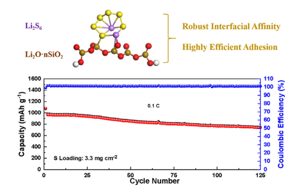 相比于传统的有机高分子粘结剂,无机粘结剂往往具有更强的分子极性,能够与极性多硫化锂形成更强健的化学吸附作用,从而有效地抑制穿梭效应。此外,通过交联反应,构建无机聚合物-有机高分子网络状粘结剂能够进一步提升粘结剂的机械强度,有效地稳定硫正极的机械结构。近日,刘杰副教授和王磊教授等基于聚硅酸锂无机粘结剂构建了一系列多功能粘结剂,显著提升了高载量锂硫电池的电化学性能。相关成果以beat365正版唯一官网为唯一通讯单位发表在Journal of Colloid and Interface Science(J. Colloid Interface Sci.,2023,629, 1045大类一区)和Chemical Engineering Science(Chem. Eng. Sci.,2023,282, 119294化工领域TOP期刊)杂志上。