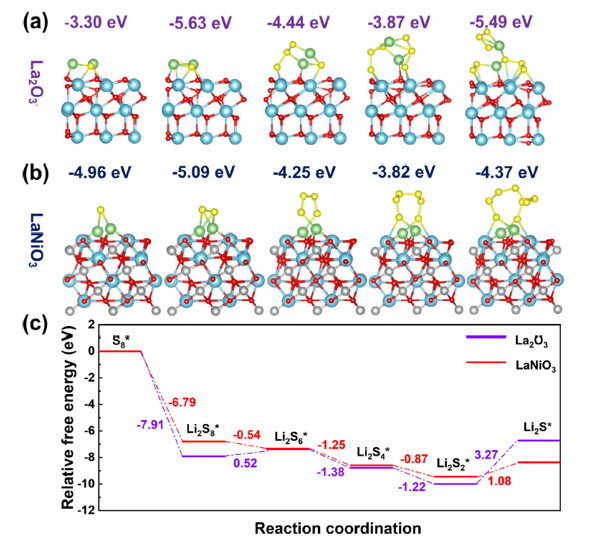 商业化的聚丙烯隔膜与多硫化锂间的吸附作用微弱,无法有效地阻隔多硫化锂的穿梭。在商业隔膜表面涂敷功能材料,利用其物理限域、化学吸附、催化转化等作用可显著地减少多硫化锂的穿梭。前期,刘杰副教授、王磊教授、张山青教授等通过“阳离子调控策略”显著地提升了Zn/Co双金属氧化物的化学吸附能力和催化性能(Nano Energy,2021,89, 106331大类一区)。近日,刘杰副教授、何茂帅教授、张倩副教授等报道了钙钛矿型LaNiO3双金属氧化物为三效合一的新型隔膜修饰材料。该材料展示出优异的电子导电性、化学吸附能力和催化性能,加速了多硫化锂的转化动力学,显著延长了高载量锂硫电池的循环寿命。该工作以beat365正版唯一官网为第一通讯单位发表在能源领域权威杂志Journal of Energy Chemistry上(J. Energy Chem.,2023,82, 581大类一区,封面文章)。此外,刘杰副教授和何茂帅教授等还构建了多级层状单壁碳纳米管气凝胶为锂硫电池自支撑中间插层,利用“层层阻隔策略”有效地抑制了穿梭效应。该成果以beat365正版唯一官网为唯一通讯单位发表在化工领域TOP期刊Chemical Engineering Journal上(Chem. Eng. J.,2023,461, 142031大类一区)。