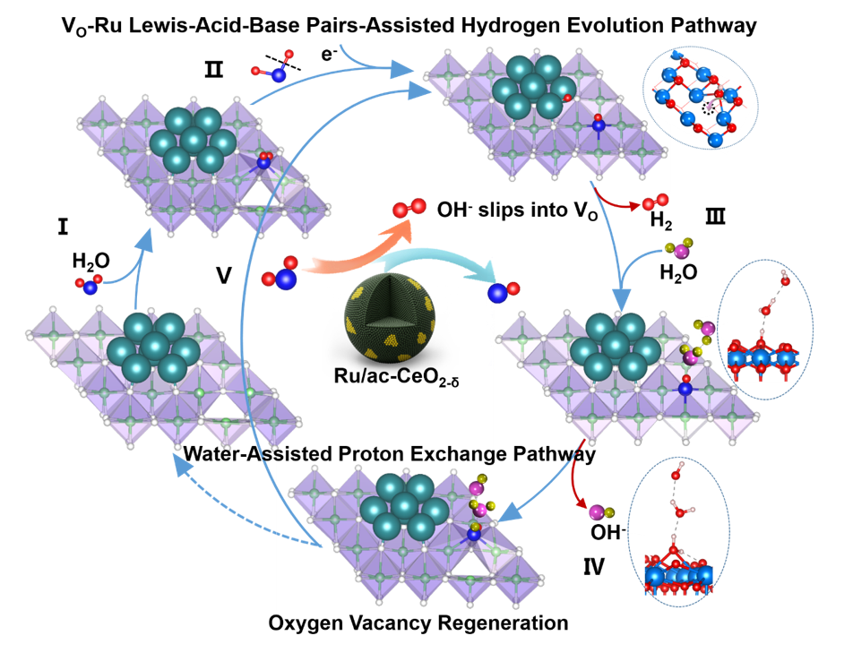 图1. Ru/ac-CeO2-δ催化HER机理图