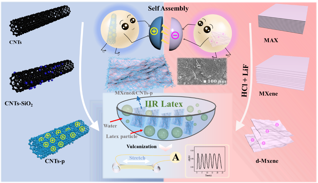 所设计的基于不同种填料静电自组装得到的具有独特的三维导电网络的传感器将会为复杂环境下的人体运动监测提供思路。