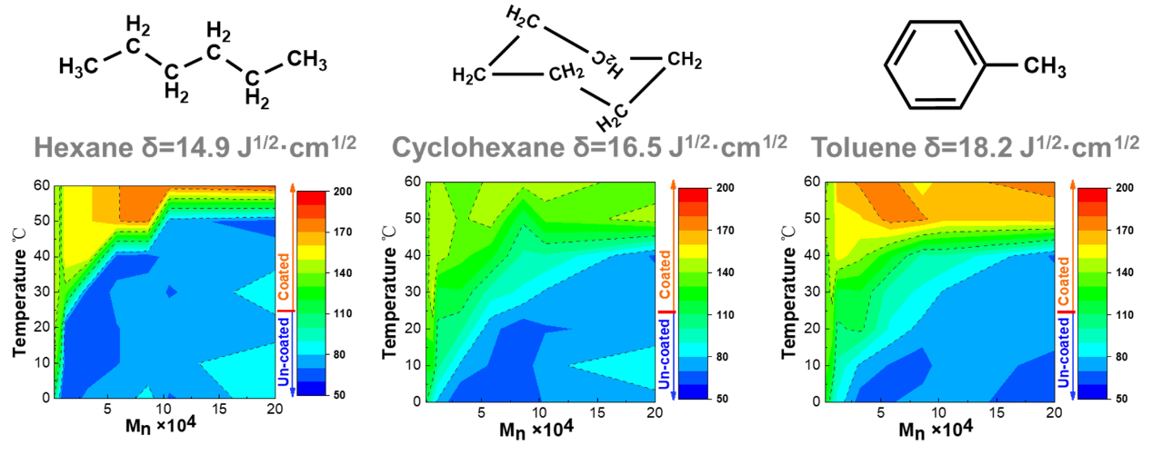 具有优异高弹性和耐磨性的橡胶材料,在汽车轮胎、密封件、鞋底等多个领域具有成熟的应用。课题组对于聚丁二烯橡胶从结构设计和实际应用具有了系统深入的认知。基于此研究者通过调控聚丁二烯柔性分子链的微观结构,控制其在溶液中的行为,制备软壳-硬核结构的超疏水(超驱液)粒子。