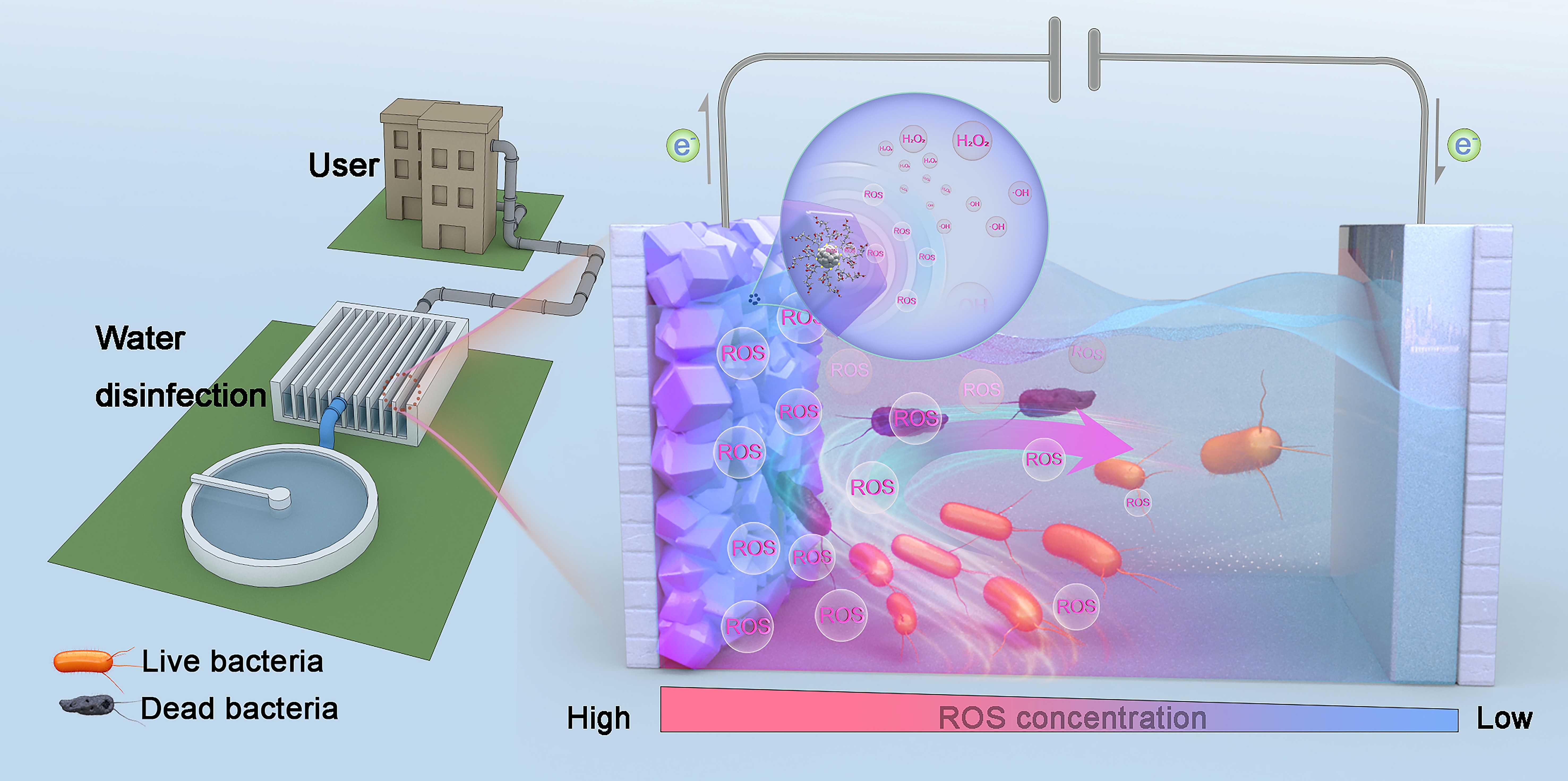 近日,beat365材料学院袁勋团队在自然子刊《Nat. Commun.》上发表了题为“Simultaneous generation of residue-free reactive oxygen species and bacteria capture for efficient electrochemical water disinfection”的研究论文。面对日益严峻的全球水资源安全挑战,该团队在电化学水消毒系统方面取得突破进展:开发了一种搭载原子级精确Ag28纳米团簇电极的电化学水消毒技术,实现了高效、连续、无残留的水体消毒。通过理性设计Ag团簇基电极材料,可提供1)大量的细菌电吸附位点,用于智能细菌富集;2)Ag团簇可原位生成局部高浓活性氧(ROS),结合银本身的本征抗菌特性实现双机制细菌灭活;3)基于电化学水消毒系统的“活死细菌迭代”(即活细菌吸附→细菌灭活→死细菌脱附)效应,实现该系统的连续水消毒。实验表明,该电化学水消毒系统对革兰氏阳性菌、革兰氏阴性菌及真菌均具有超过99.99%的杀菌率,且经过40次循环使用性能仅下降0.75%,连续运行5小时以上仍可维持99.90%的抗菌效率。此外,该系统还具有低能耗、高处理通量及高环境耐受能力等特点。这项研究不仅显著提升了饮用水消毒技术的效率与可靠性,还为全球范围内的水质安全问题提供了全新的解决思路。
