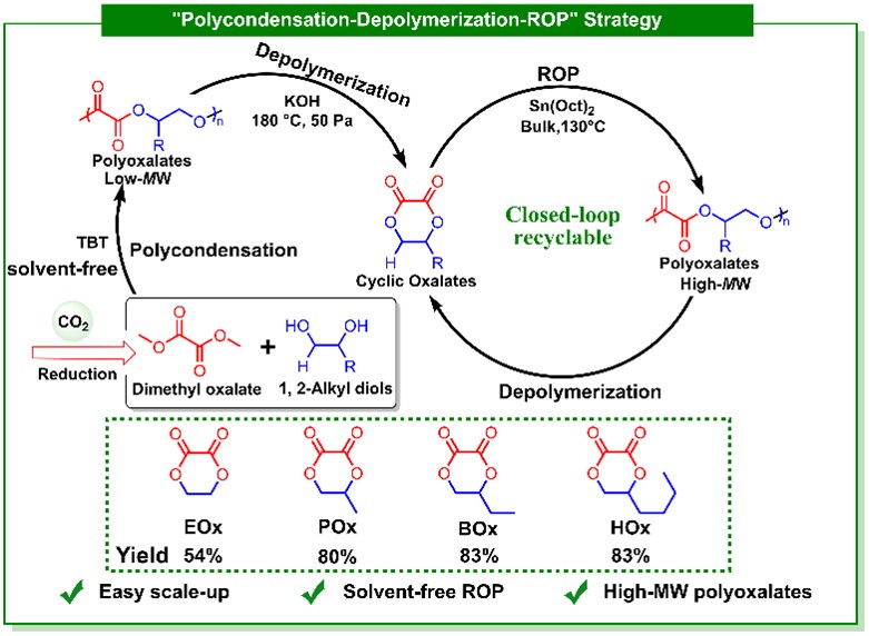图1.“缩聚-解聚”策略制备高分子量、可闭环回收聚草酸酯