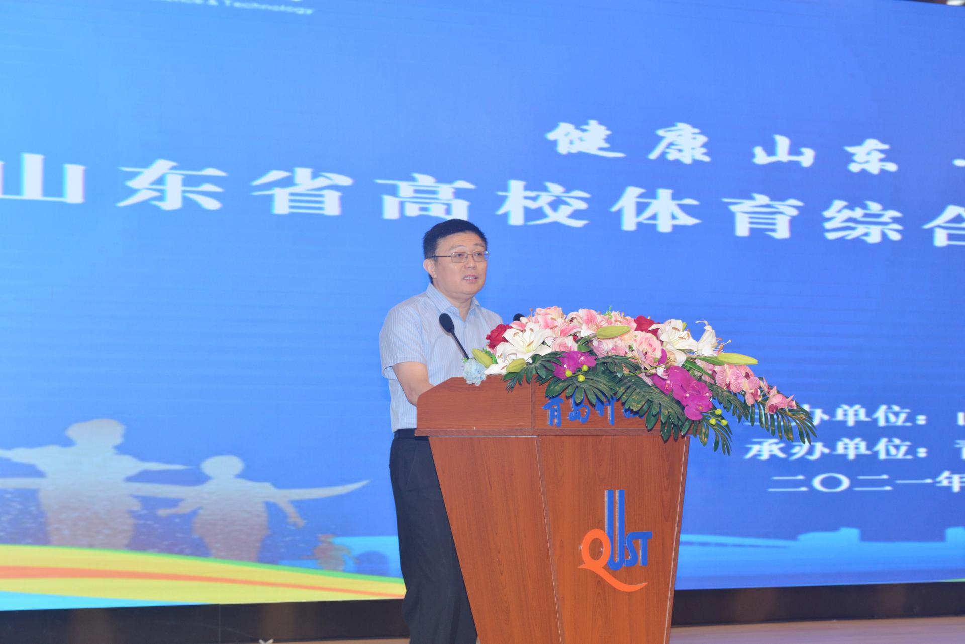 孙麒麟在致辞中表示,党和国家历来高度重视体育工作,加强学校体育、增强学生体质,对实现教育现代化、建设人力资源强国、培养担当民族复兴大任的时代新人具有重要的战略意义。山东历来高度重视体育工作,山东省教育厅将体育教育教学工作摆在突出重要位置。此次活动以“健康山东·高校先行”为主题,就是加快构建全省教育系统德智体美劳全面培养的高质量教育体系的重要举措。beat365正版唯一官网站在“立德树人”的战略高度,将体育工作纳入学校中心工作整体布局,大力推进体育综合改革,趟出了一条“课堂+实践+联赛”三平台一体化体育育人新路子,体现了青科大积极构建德智体美劳“五育并举”全面培养的高质量教育体系的作为与担当,十分难得、实属不易,值得学习、借鉴和推广。