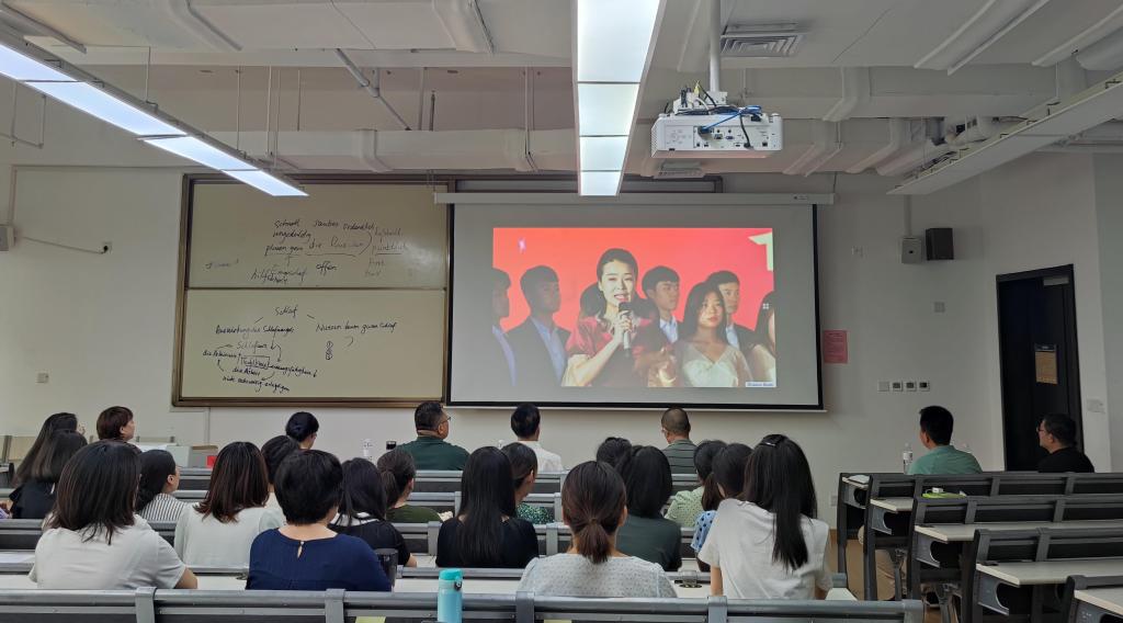 演出开始前,经济与管理学院、信息学院的学生代表手持小党旗在现场进行了红歌拉歌活动,唱出了新时代青年对党的忠诚、对祖国的热爱。