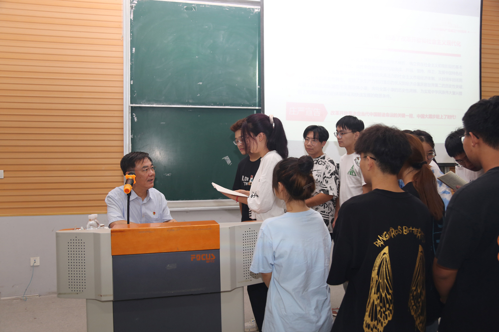 马连湘从“一个大事、四个阶段、一个精神、九个必须、三个要求”五个层面,结合党史中的重大事件和党带领中国人民为实现中华民族伟大复兴不懈奋斗的历史进程,深入浅出、生动形象地带领同学们一起学习了习近平在庆祝中国共产党成立一百周年大会上的重要讲话精神,切实推进讲话精神进课堂、进头脑。马连湘指出,100年来中国共产党弘扬“坚持真理、坚守理想,践行初心、担当使命,不怕牺牲、英勇斗争,对党忠诚、不负人民”的伟大建党精神,带领中国人民披实现了从不挨打、不挨骂到不挨饿的巨大进步,带领中华民族实现了从站起来、富起来到强起来的伟大飞跃,全面建成了小康社会,实现了第一个百年奋斗目标,这是中华民族的伟大光荣,是中国人民的伟大光荣,更是中国共产党的伟大光荣,在中华民族的发展历史进程中具有重要意义。马连湘表示,只有看清楚过去我们为什么能够成功,才能弄明白未来我们怎样才能继续成功,以史为鉴、开创未来,我们要认真学习百年党史,充分汲取奋进力量。今天,我们已经发展成为具有重大全球影响力的世界第一大执政党,未来,我们必须继续为实现人民对美好生活的向往不懈努力,努力为党和人民争取更大光荣!