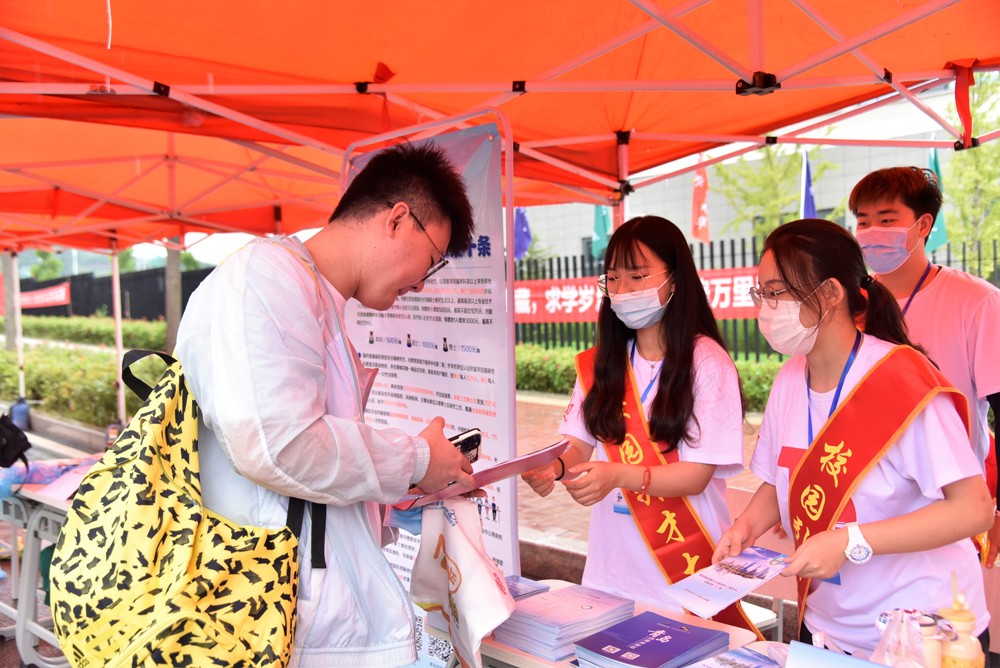 学校为全体新生配有“一对一”志愿者对接服务,2000余名学生志愿者活跃在校园各个角落。为方便新生报到,学校在校门口安排摆渡车辆送新生直达宿舍。此外,学校还安排班车分赴青岛站、青岛北站、四方长途站接站。学校开设“绿色通道”,方便家庭困难新生顺利入学。