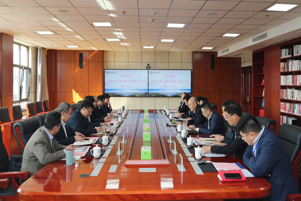 曾庆良对学校取得的成绩表示赞赏。他简要介绍了山东师范大学的基本情况,并期望在学科建设、人才培养、高校治理等方面加强与学校的交流合作。
