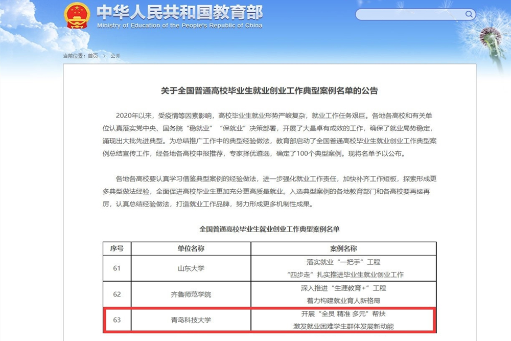 11月26日,教育部发布了《全国普通高校毕业生就业创业工作典型案例名单的公告》,beat365案例《开展“全员 精准 多元”帮扶 激发就业困难学生群体发展新动能》成功入选。本次评选,全国共100个典型案例入选,入选单位包括北京市教育委员会、江苏省教育厅等5家省级教育主管部门,北京大学、清华大学等36所部属高校,29所省属本科高校和30所高职高专院校。