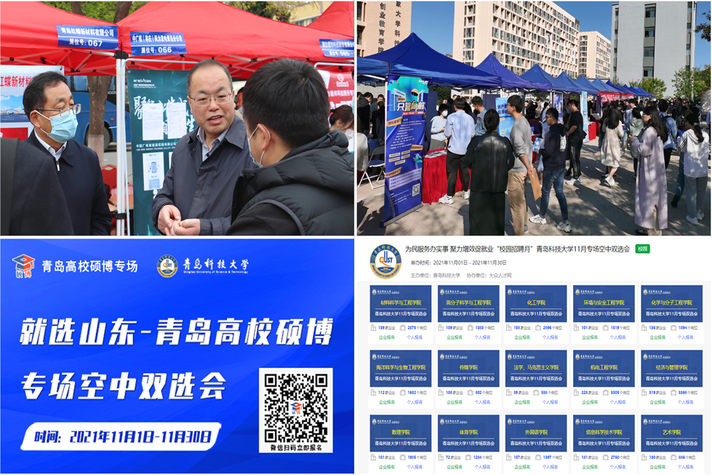 市场开拓立体化。疫情防控常态下,采取线上线下有机结合,“名企行”职业体悟活动以及“走企业、访校友、联政府”拓市场行动,着力构建毕业生就业生态圈。2021年,组织淄博、威海、滨州、潍坊等地专场招聘会5场,线下大型线招聘会7场,线上大型招聘会9场,每日来校宣讲企业在15家左右,合计到校招聘企业达到2400余家,为毕业生提供就业岗位20余万个。