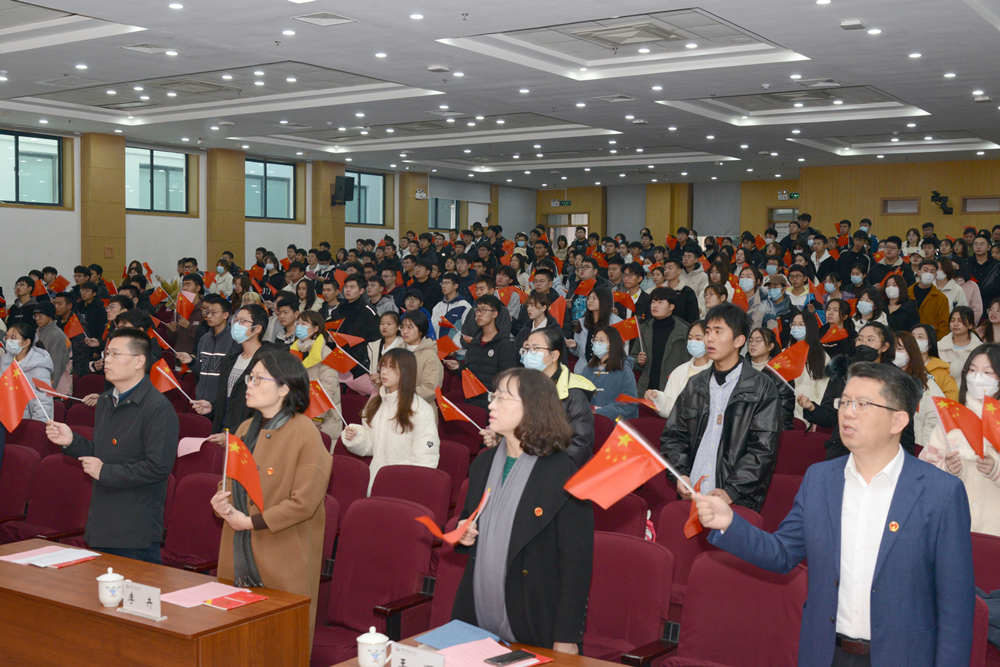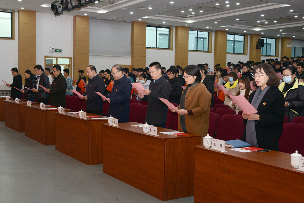 党委(校长)办公室副主任、法律事务办公室主任步德胜带领现场师生集体朗读宪法序言及正文中的部分章节、条款,与会人员精神饱满、掷地有声,在庄严肃穆的氛围中共同学习宪法知识、坚定法治信念。