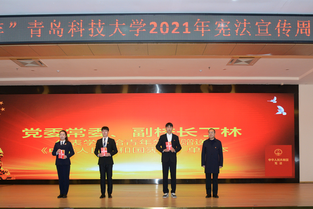 为认真学习贯彻习近平法治思想,深入贯彻落实党的十九届六中全会精神,积极推动开展宪法宣传教育,12月3日,学校在崂山校区第二报告厅举行国家宪法日“宪法晨读”活动。学校党委常委、副校长李勇,党委常委、副校长丁林出席活动,活动由学校党委常委、宣传部部长陈刚主持。