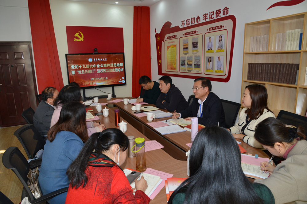 12月21日上午,学校在马克思主义学院举办推进党的十九届六中全会精神进思政课研讨会暨“红色云展厅”进校园活动主题论坛。党委副书记张鸿波出席会议并讲话,党委常委、宣传部部长陈刚主持。教务处、马克思主义学院等相关部门、学院负责人,思政课教研室主任参加活动。