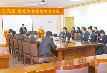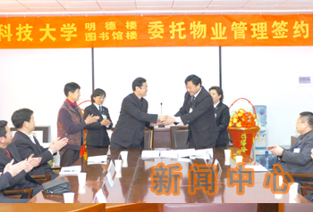 在签字仪式上,后勤处和欣苑物业中心的负责人表示,为做好此项工作,双方要加强协调,相互支持,严格履行协议,共同努力,把明德楼、图书馆楼的管理创建为学校后勤物业管理的范例。使其成为环境优美、楼内清洁、管理有序、老师和学生舒心的教学和学习场所。