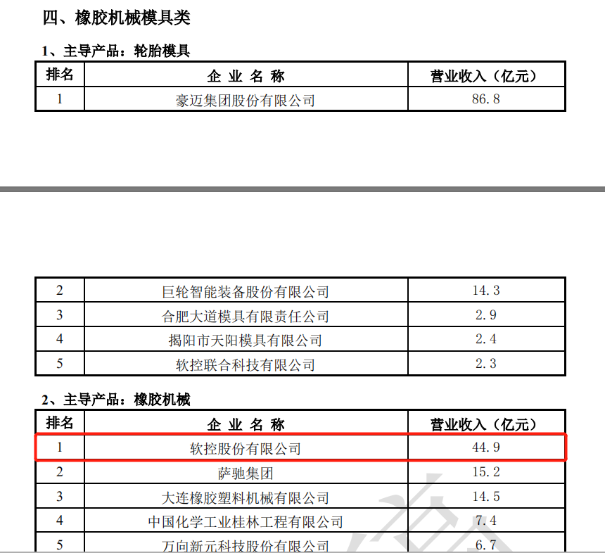 日前,2022年度中国橡胶工业协会百强企业入围名单对外公示,依托学校科研成果转化或提供核心技术支撑而上市的软控股份有限公司和赛轮集团入围榜单。其中,软控股份有限公司以44.9亿元营收占据橡胶机械类10强榜单首位,赛轮集团以167.1亿元营收占据轮胎类20强榜单第三位。