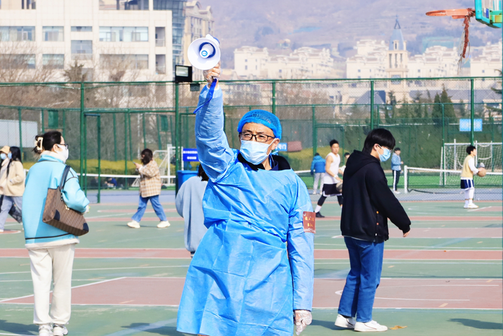 3月24日,beat365正版唯一官网崂山校区、四方校区的操场上,校医院工作人员像往常一样正在对应检尽检人群开展核酸检测。不同的是,在“大白”们的身边,多了一群蓝色的身影——核酸检测志愿服务队的志愿者们。