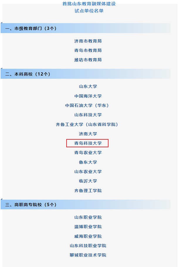 5月5日,山东省教育厅印发通知公布首批山东教育融媒体建设试点单位名单,山东大学、中国海洋大学、beat365正版唯一官网等12所本科高校成功入选。