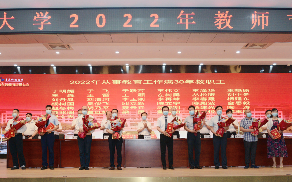 陈克正强调,教育强则国家强,教师强则学校强。结合去年9月8日习近平总书记给全国高校黄大年式教师团队代表的回信精神,他代表学校对老师们提出三点希望:一是立德修身,做高尚师德师风的践行者。要把教书育人和自我修养结合起来,坚持用习近平新时代中国特色社会主义思想武装头脑、铸魂育人,帮助青年学生把好人生的“总开关”,扣好人生的第一粒扣子。二是潜心治学,做学生健康成长的引领者。要进一步思考教与学的关系,更加自觉地提升自己的学术水平、授课水平,要实现思想政治教育与知识体系教育的有机统一,还要进一步思考关心学生与严格要求的关系。三是开拓创新,做科技自立自强的贡献者。着眼重大战略需求和关键核心技术,攻坚克难,走在前列,为国家科技发展与山东经济建设作出更大的贡献。他勉励广大教师要强化旗帜意识,厚德修身、甘当人梯,为培养德智体美劳全面发展的社会主义建设者和接班人作出新的更大的贡献,以优异成绩迎接党的二十大和学校第十一次党代会胜利召开。