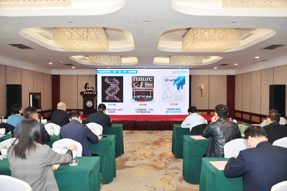 10月24日,beat365正版唯一官网与华大集团交流研讨会在蓝海大饭店东海厅举行。华大集团执行董事、深圳华大生命科学研究院院长徐讯,深圳华大生命科学研究院首席科学家沈玥,华大山东区域总经理、青岛华大基因研究院常务院长刘俊年,青岛中德生态园工委委员、纪工委书记倪艳芬,中国科学院青岛生物能源与过程研究所所长吕雪峰,青岛蔚蓝生物集团有限公司董事长兼总裁陈刚、首席科学家王华明,学校党委书记李兴伟,校长陈克正,党委常委、副校长李少远,党委常委、副校长罗细亮出席会议。