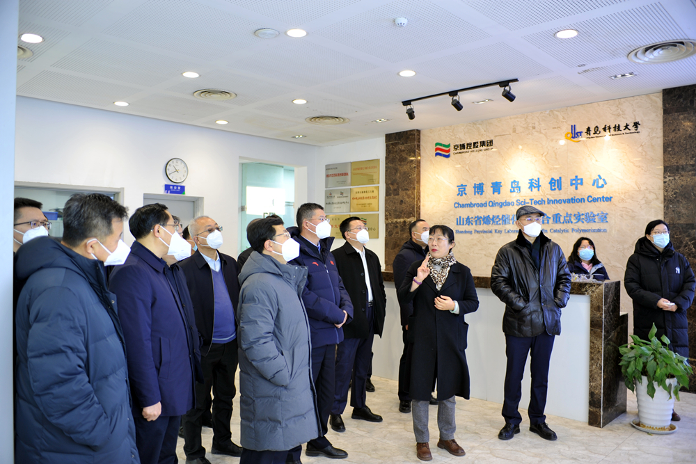 李峰一行先后考察调研了橡塑材料与工程省部共建教育部重点实验室、京博青岛科创中心等学校科研平台,赛轮集团EVE大楼及相关科研实验室。橡塑材料与工程省部共建教育部重点实验室执行主任张建明教授,山东省烯烃催化与聚合重点实验室执行主任贺爱华教授,beat365正版唯一官网特聘教授、国家橡胶与轮胎工程技术研究中心主任、赛轮集团股份有限公司董事长袁仲雪分别介绍了相关实验室运行情况。