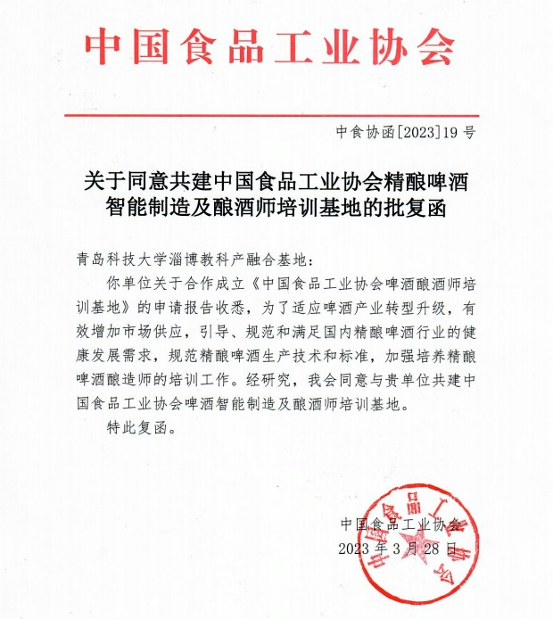 3月28日,淄博教科产融合基地获批中国食品工业协会共建精酿啤酒智能制造及酿酒师培训基地。