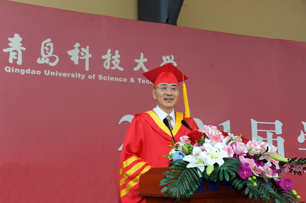 校长、校学位评定委员会主任陈克正向2021届毕业生表示热烈祝贺,向所有为毕业生健康成长付出关爱和辛劳的师长、亲人、朋友表示衷心感谢。陈克正指出,在过去的1000多个日日夜夜,母校见证了同学们的成长变化,专业知识更加扎实,分析解决问题能力更加全面,肩上的担当更加硬朗,心智也更加成熟。这几年正是学校“十三五”高质量发展时期,学校入选山东省高水平大学和高水平学科建设项目,在建设“双一流”和“五有”高水平大学的征程上不断迈上新台阶。毕业生同学们是参与者、亲历者、见证者和贡献者,学校因为你们而骄傲,也希望毕业生同学们能以身为青科大人而倍感荣耀。在毕业生即将踏上事业新征程、迈向人生新阶段之际,陈克正送给广大毕业生四个路标,希望毕业生砥砺前行、不懈努力、坚持到底。