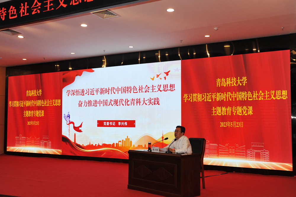 李兴伟强调,学习贯彻习近平新时代中国特色社会主义思想主题教育是当前全校的一项重大政治任务,学校广大党员干部,特别是领导干部,必须准确把握主题教育的总要求、根本任务、具体目标,进一步统一思想、提高站位、明确路径,把理论学习、调查研究、推动发展、检视整改贯通起来,持续在学思想悟真理、强党性铸忠诚、重实践建新功上下功夫,切实把思想和行动统一到党中央重大决策部署上来,以推动高质量发展的实际成效检验主题教育成果。我们要坚定不移以习近平新时代中国特色社会主义思想为指导,坚持社会主义办学方向,落实立德树人根本任务,对接国家、省重大战略和区域经济社会发展需求,积极推进“三个有组织”,奋力建设“特色鲜明、走在前列”的高水平大学,以实际行动为加快推进中国式现代化进程贡献青科大的智慧和力量。