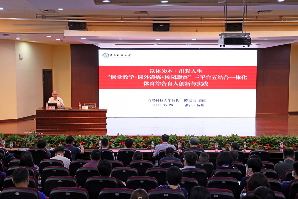 5月26日,应教育部高等院校体育教学指导委员会邀请,校长陈克正赴浙江杭州参加2023年全国高等院校体育课程思政建设研讨会,并作了题为《以体为本·出彩人生“课堂教学+课外锻炼+校园联赛”三平台五结合一体化体育综合育人创新与实践》的主旨报告。