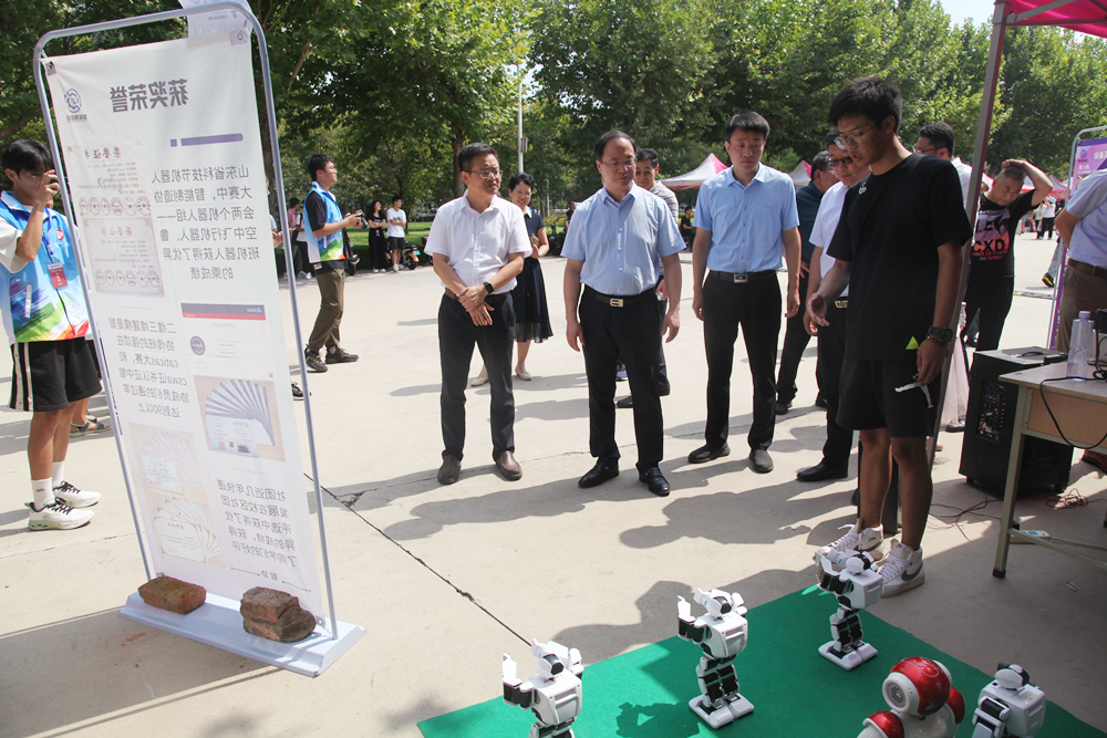 自动化学院将“校企合作+科技创新”融入迎新全过程。青岛特锐德有限公司、青岛科捷智能有限公司、青岛环海新时代科技有限公司、青岛展诚科技有限公司等战略合作伙伴、校友企业提供了迎新礼包、“温暖到寝”迎新车辆、定制工作服等物资,为新生送上特别的“见面礼”,将“职业生涯教育课堂”融入迎新过程,实现校企合作共育“新”才。在迎新现场设置科技创新作品展台、科创赛事一览图、学业指导专员等,帮助新生迅速了解专业特色和学院赛事情况,让新生在入学第一站充分感受学院科技创新氛围,激发兴趣和向往,与科技“创”个满怀。