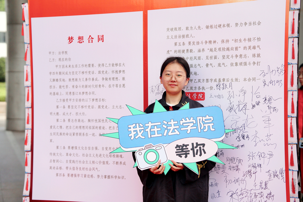 法学院精心谋划,开展了包括佩戴定制院徽等一系列有温度、有仪式感的迎新活动。在家长和老师的见证下,新生在梦想合同书上签上自己的姓名,承诺立大志、明大德、成大才、担大任,努力争当社会主义法治接班人。学院党政领导、专业课教师在报到现场与新生亲切交流,送去了学院的期待和寄语。学院还通过优化报到流程、建立迎新服务队等方式,有效提升新生报到体验。