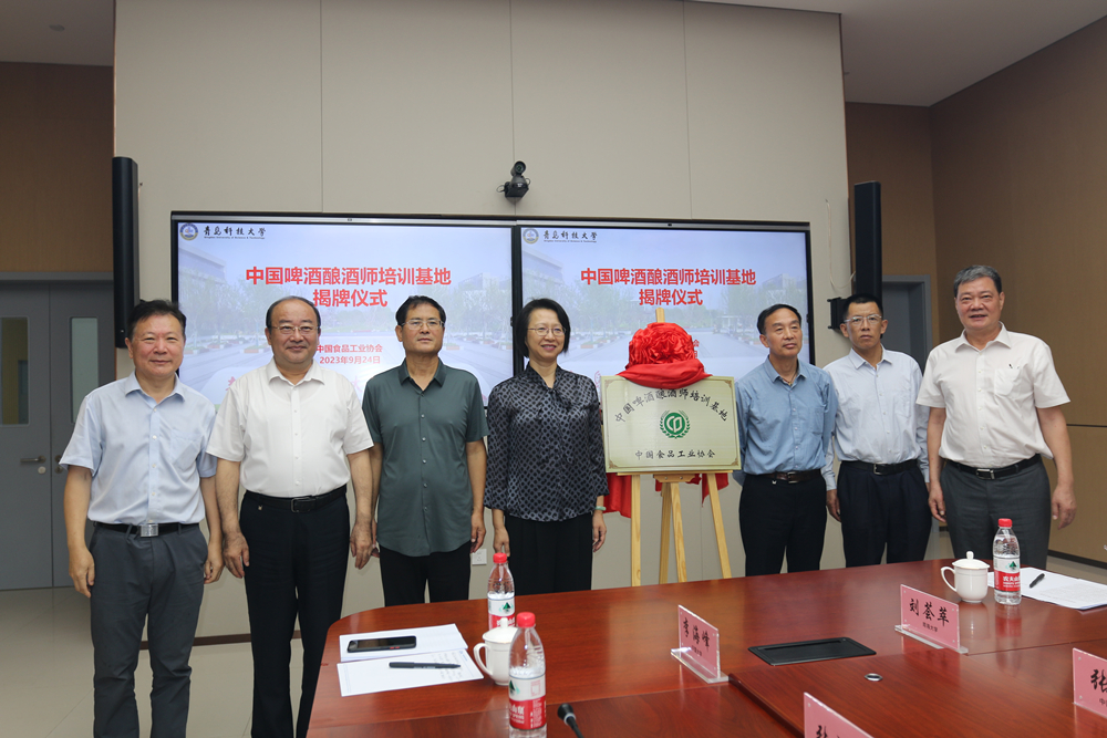 9月24日,“中国啤酒酿酒师培训基地”揭牌仪式在淄博教科产融合基地举行,beat365正版唯一官网党委副书记李勇,中国食品工业协会副秘书长、教育部食品工业职业教育教学指导委员会秘书长徐坚共同为“中国啤酒酿酒师培训基地”揭牌。江南大学原副校长、教育部食品科学与工程类专业教学指导委员会主任金征宇,中国食品工业协会啤酒专业委员会秘书长曲东杰,淄博市政协副主席、民建淄博市委会主委马靖,淄博市住建局二级巡视员、淄博基地项目建设工作专班主任尚明楼一同出席仪式。