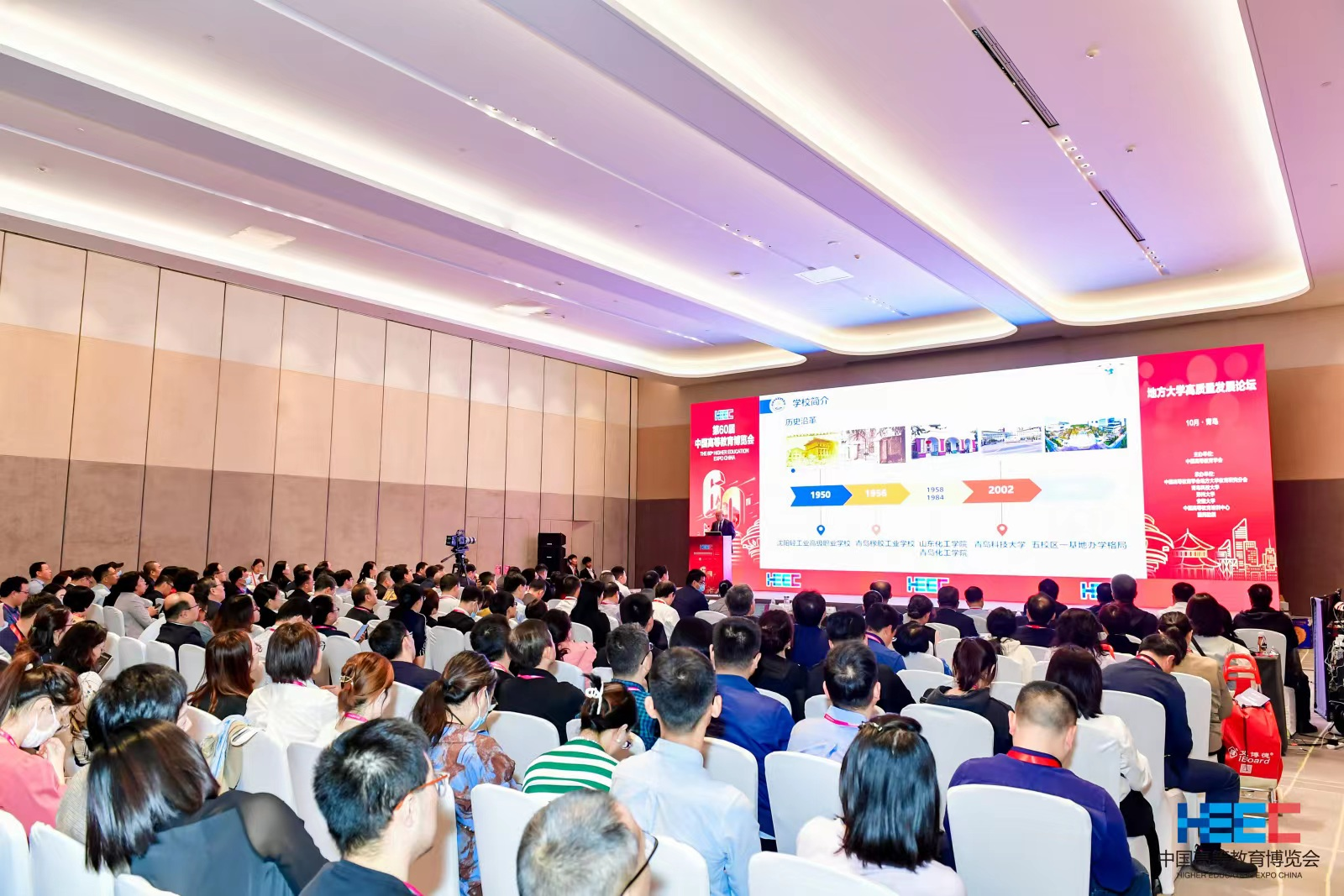 为深入学习贯彻党的二十大精神和习近平总书记关于建设教育强国的重要论述,探索地方大学面向国家、立足区域、服务行业的特色化高水平建设战略和举措,10月12日,由中国高等教育学会主办,中国高等教育学会地方大学教育研究分会、beat365正版唯一官网、郑州大学、安徽大学等单位联合承办的地方大学高质量发展论坛在青岛红岛国际会议展览中心成功举办。该论坛是第60届中国高等教育博览会系列论坛之一,包含开幕式、主旨报告、“地方大学高质量发展”主题书记校长圆桌对话沙龙和“职普融通、产教融合、科教融汇”主题校企圆桌对话沙龙,来自全国各高等院校及科研院所的近500位领导专家参会。
