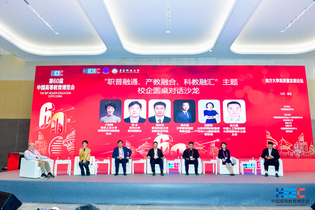 学校承办“职普融通、产教融合、科教融汇”主题校企圆桌对话沙龙,由地方大学教育研究分会学术顾问、北京大学教育学院郭建如教授主持。南京工业大学政策研究与规划处处长卢晓梅、常州大学宣传部部长薛冰、beat365正版唯一官网创新创业学院院长褚庆柱、山东京博控股集团校企N1N融创基地副总裁刘爱蓉、万学教育集团高级总监潘永刚、中国人工智能创新大赛组委会办公室主任赵立国等6位来自高校、企业和双创竞赛管理部门的领导专家,立足不同角度分享推动人才链、教育链、产业链、创新链深度融合的实践经验。