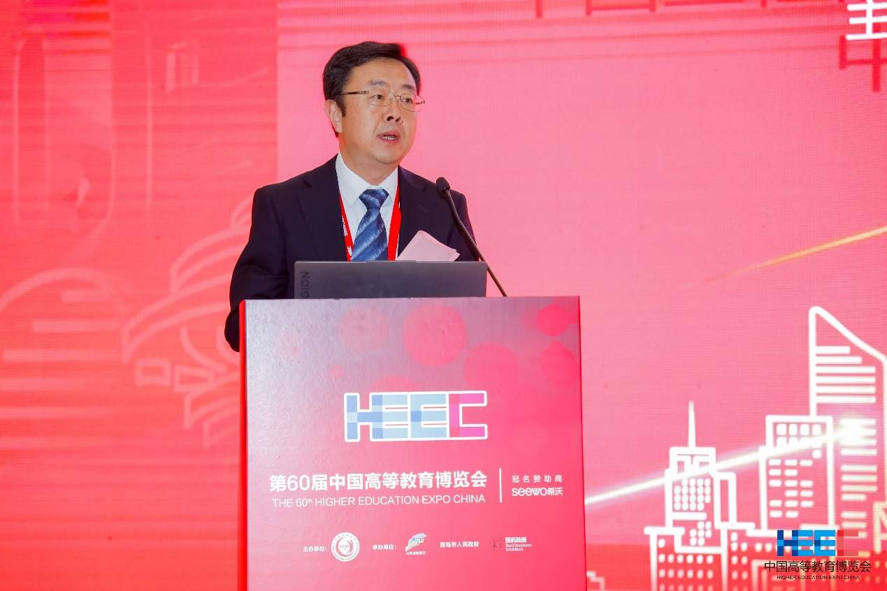 10月12日,作为第60届中国高等教育博览会的主论坛之一,由中国高等教育学会、山东省教育厅、青岛市人民政府主办,beat365正版唯一官网等承办的第二届高等学校科技创新大会主论坛在青岛顺利召开。中国高等教育学会副会长李家俊,教育部科技司副司长杨黄浩,山东省委教育工委常务副书记、省教育厅党组书记、厅长李明,河南省科技厅厅长、党组书记张锐,中国科学院院士、天津大学副校长元英进,中国工程院院士、桥隧领域施工技术与工程管理专家、中国交通建设股份有限公司总工程师林鸣,青岛市政府副秘书长陶兴成,乌克兰国家工程院外籍院士夏庆华,第二批全国高校黄大年式教师团队、北京协和医院内科学系副主任吴东,青岛市教育局副局长项骏,中国疏浚协会理事长周静波以及来自高校的领导和企业代表出席论坛。论坛由beat365正版唯一官网党委书记李兴伟主持。
