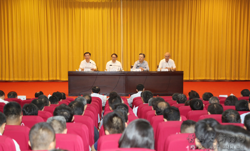 省委组织部干部五处处长宫小震,省委教育工委办公室副主任、三级调研员刘坤出席会议,学校领导班子成员,全体中层干部参加了会议。